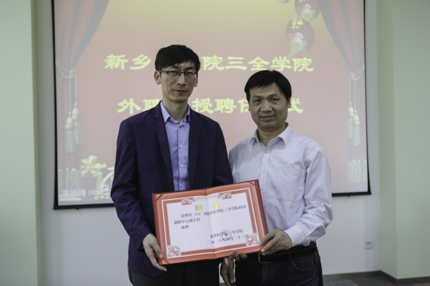 4月23日下午,我校在平原新区行政楼第五会议室举行赵冰博士聘任仪式。我校副院长王彦杰出席,科研部负责人、赵冰博士课题组成员王君敏、李林玉及报名参与该课题组的相关教师参加。聘任仪式由人力资源部主任李森主持。 王彦杰对赵冰的到来表示热烈欢迎,他向赵冰博士一行介绍了学校的建校背景、专业及院系设置、学校整体发展规划以及科研的定位,并向与会人员介绍了赵冰博士的基本情况。科研部张慧英主任向赵博士一行介绍了我校科技创新中心的产生背景、中心规模以及科研未来发展规划,并对赵冰博士科研团队的入驻表示热烈欢迎。最后,王彦杰为赵冰颁发聘书,并合影留念。 赵冰对学校给予的支持和信任表示衷心感谢,他表示自己及课题组成员定将恪尽职守、尽职尽责,同时也希望学校有更多年轻的、有一定科研经验的伙伴们加入这一团队,大家并肩作战、携手共进,在枯燥的科研道路上坚持走下去,定能收获快乐和喜悦。最后,他表示通过我们的共同努力,学校未来的科研工作定会有突破、有创新。 专家简介 赵冰,男,中共党员,硕士研究生导师,郑州大学第三附属医院副主任医师,任河南省妇幼保健协会女性盆底及生殖整复专业委员会副主任委员等职务。主要致力于机械牵张诱导的骨髓间充质干细胞与人脱细胞羊膜复合组织移植治疗盆底功能障碍性疾病的研究。以主持人身份获得6项科研课题资助,并以第一作者发论文10篇,其中SCI收录6篇,申请专利3项。