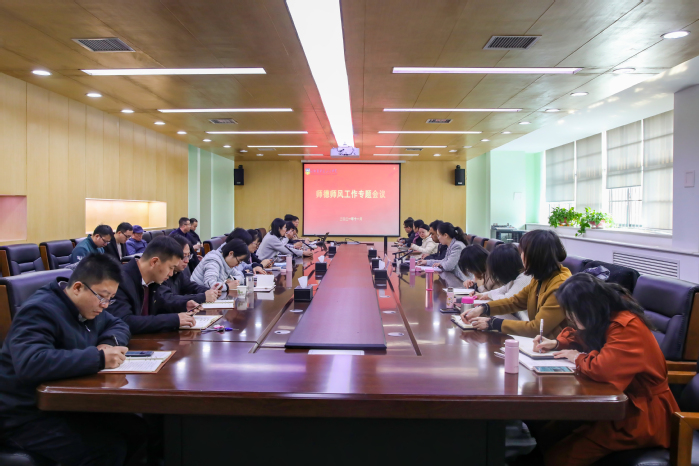 1128日上午,我校师德师风专题工作会议在平原校区行政楼第三会议室召开。党委副书记张钢、党委副书记、工会主席吕莎出席会议并讲话。各党总支(直属党支部)书记,党委教师工作部、党委保卫部等相关职能部门负责人参加会议。