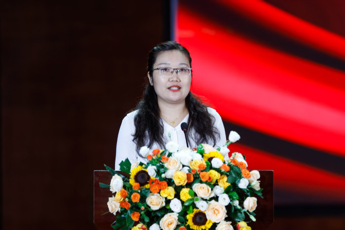教师代表、外国语学院教师李雪峰发言。她说,为人师者的最大快乐,便是亲见学生成才。每当收到他们学业有成的喜讯时,内心总是充满欢喜与自豪;无论身在何处,那一声“老师好”,就是最大的肯定。面对万千家庭的殷切期待,师者不可有丝毫懈怠,必须不断学习。深入思考;必须潜心研究,与时俱进。教师要挥洒汗水,更要提升智慧,认真践行师者初心使命,为实现中华民族的教育梦贡献力量。