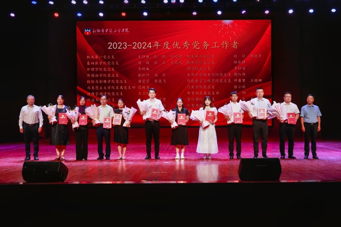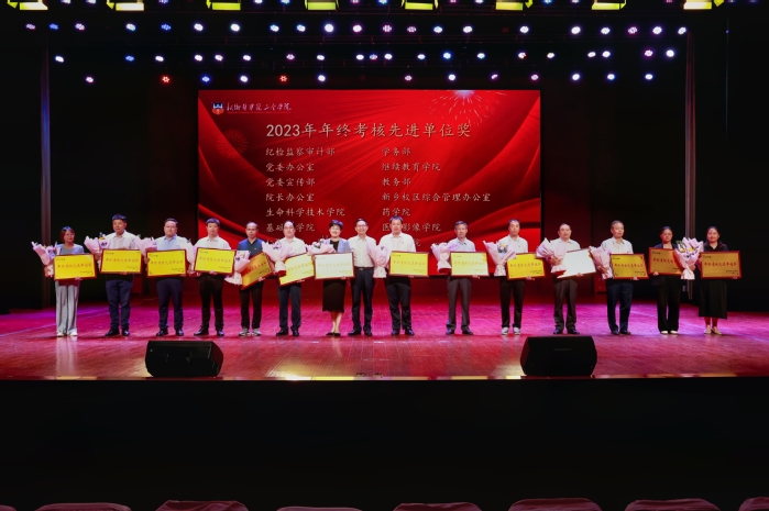 全体在校领导、获奖单位及个人、院部党政负责人、书院负责人、职能部门负责人、全体教职工及学生代表参加表彰会。大会由学校党委副书记杨国平主持。 开场视频《菁菁校园感谢有你》回顾了过去一年广大教职工在教学科研、人才培养、服务社会等方面取得的成绩,一幕幕感人的瞬间,展示了教育工作者不辞辛劳,默默奉献的精神。 表彰大会在激昂的国歌声中拉开序幕。大会表彰了2023年年终考核先进单位、进步奖、优秀教研室(实验室)、创新项目奖,2023年国际化建设先进集体及先进个人,2023年度文明教师,2023-2024年度先进基层党组织、优秀共产党员、优秀党务工作者,2023-2024学年优秀教师,2023年度十佳人物,河南省教育厅学术技术带头人,学校特殊贡献奖等奖项。校领导分别为获奖单位和教师颁发荣誉证书。