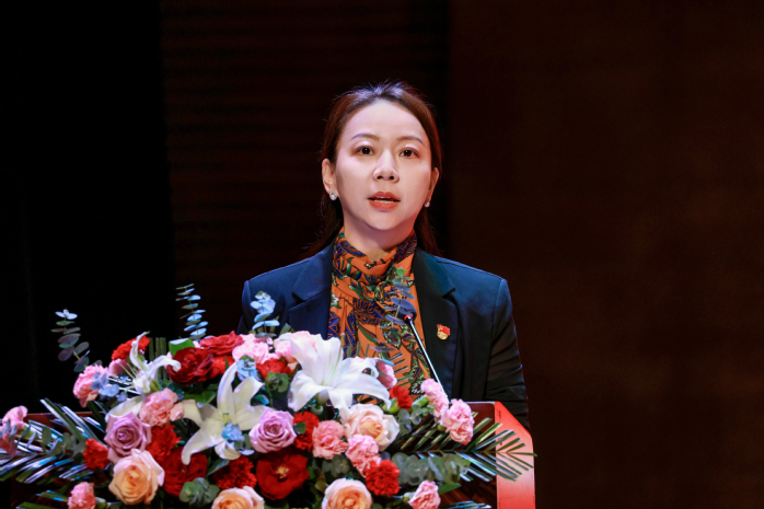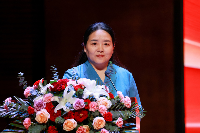 教师代表靳瑞霞教授发言,她表示:“从孔子‘有教无类’的千年智慧,到陶行知‘爱满天下’的教育情怀,教育始终是心灵与心灵的共鸣。正如苏格拉底所言,教育不是灌输,而是点燃火焰,我们点燃的,不仅是学生对知识的渴求,更是他们对未来的憧憬与信念。在这个数字化浪潮奔涌的时代,这份‘点燃’被赋予了新的内涵——我们不仅要传授知识,更要培养学生面对信息洪流的思辨能力,在技术变革中保持独立思考的定力。”