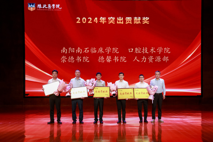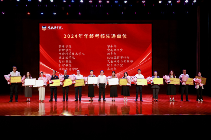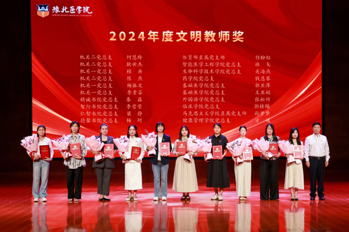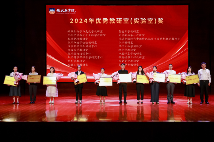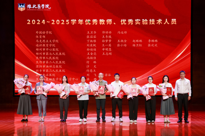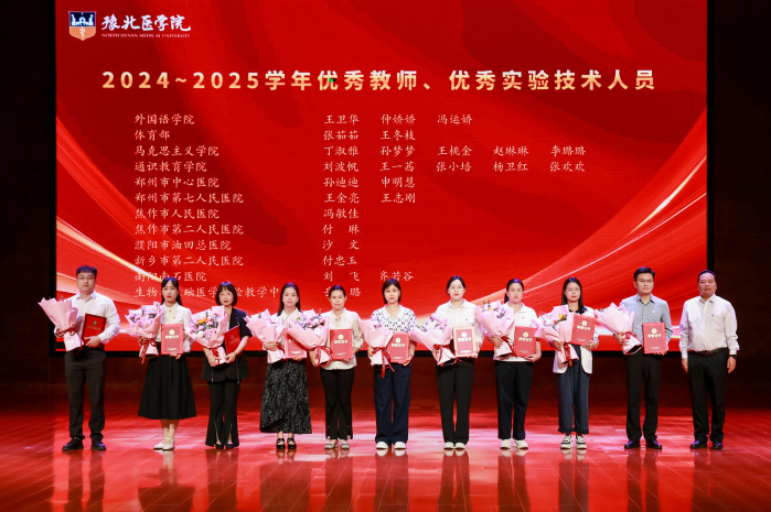 表彰大会在激昂的国歌声中拉开序幕。大会表彰了2024年年终考核先进单位、进步奖、优秀教研室(实验室)、突出贡献奖、2024年度文明教师、2024年度十佳辅导员、2024-2025学年优秀教师、优秀实验技术人员、河南省本科高等学校青年骨干教师、河南省优秀教师等奖项。校领导分别为获奖单位和教师颁发荣誉证书。